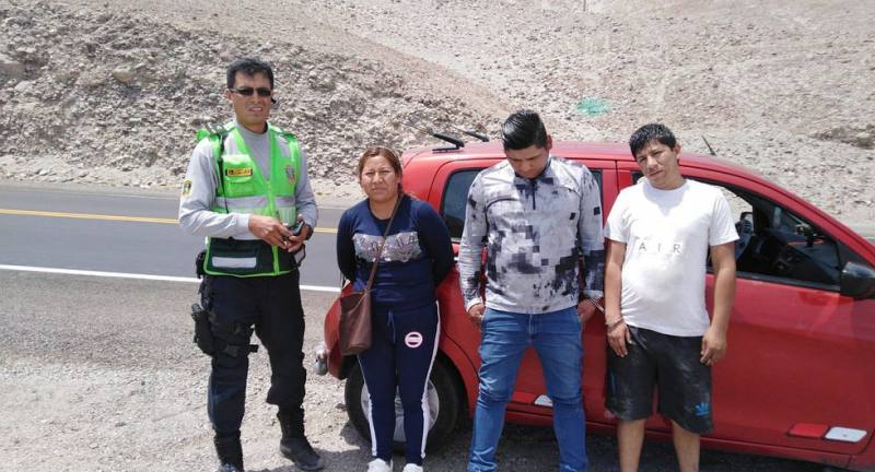 Al percatarse de lo ocurrido, denunció el caso en la dependencia policial y los agentes iniciaron el patrullaje hasta dar con los sospechosos en el kilómetro 923 de la carretera Panamericana Sur.