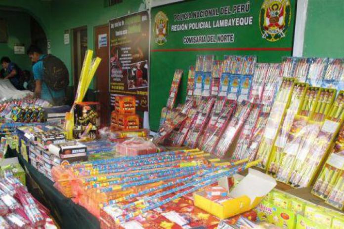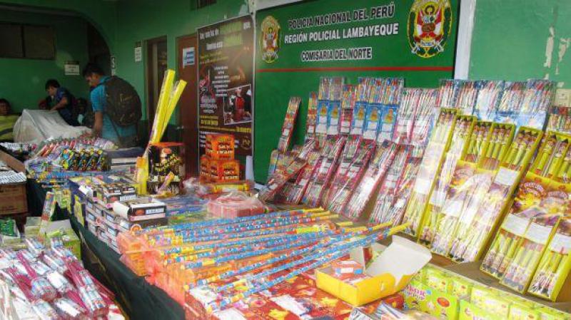 Media tonelada de peligrosos artefactos explosivos de procedencia extranjera decomisó la policía esta tarde en un almacén clandestino ubicado frente a una de las plataformas principales del mercado Modelo de Chiclayo, en la región Lambayeque.