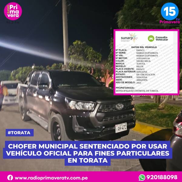 Los hechos ocurrieron el 22 de julio de 2024, cuando Chávez Asqui fue intervenido por la Policía en Samegua, conduciendo en estado de ebriedad el vehículo oficial de placa EAH-472, perteneciente a la Municipalidad Distrital de Torata.