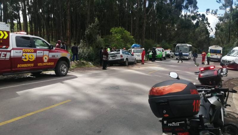 El hecho se registró a alas 08:30 horas en inmediaciones de la llamada 'Zona X', perteneciente al Parque Arqueológico de Sacsayhuamán, donde las unidades de placa de rodaje X1F-311 y W3A-476 chocaron en plena vía Cusco - Tambomachay.