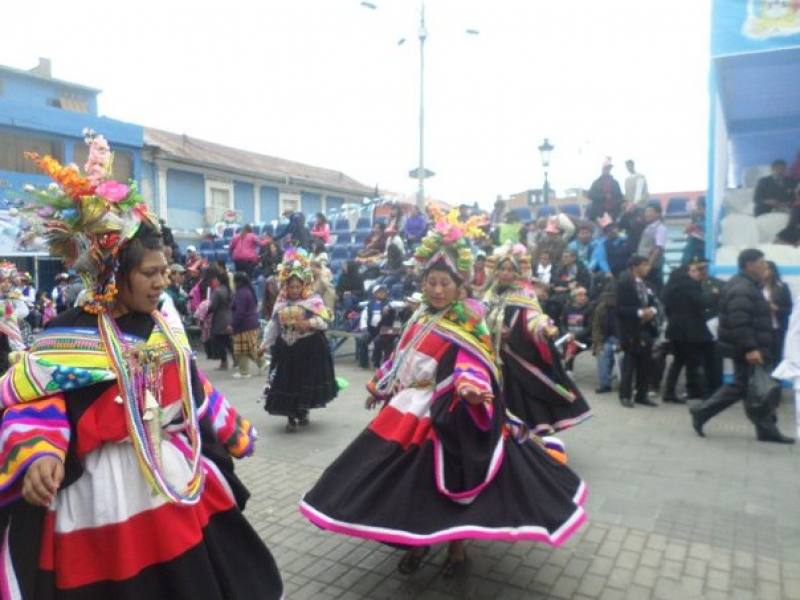 La delegación de danzarines de pules y negritos de la Municipalidad Distrital de San Cristóbal - Calacoa participó como invitada en el concurso de Danzas Mestizas o traje de luces, desarrollado en el estadio Enrique Torres Belon y el lunes, fue la primera delegación en iniciar la gran parada folklórica por las principales arterias de Puno.