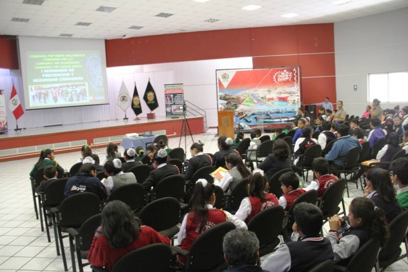 Con el propósito de contribuir a la seguridad ciudadana como un tema preventivo desde las diferentes instituciones educativas de Ilo, la Policía Nacional del Perú junto a integrantes del CODISEC Ilo, desarrollaron el evento “ Primer Seminario de Prevención y Seguridad Ciudadana”, dirigido a estudiantes que conforman el Concejo Escolar de cada entidad educativa.