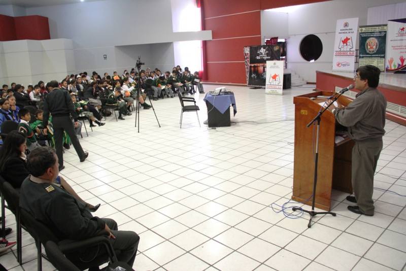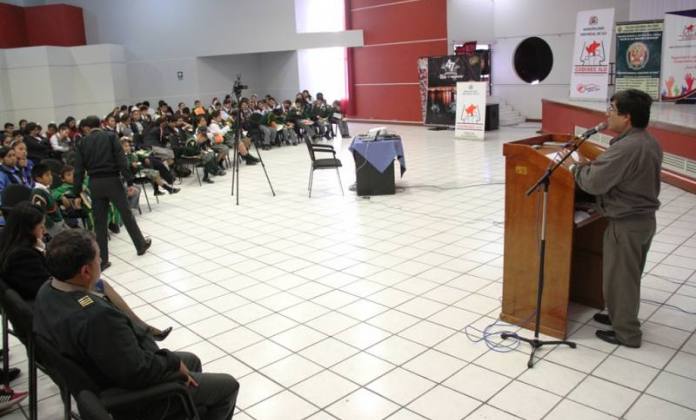 El acto tuvo lugar la mañana del lunes 20 de junio, en el auditorio de la Municipalidad de Ilo, que contó con la presencia del alcalde de Ilo Willam Valdivia Dávila, así como un centenar de alumnos de diferentes entidades educativas de la provincia, plana docente y funcionarios de la entidad policial.