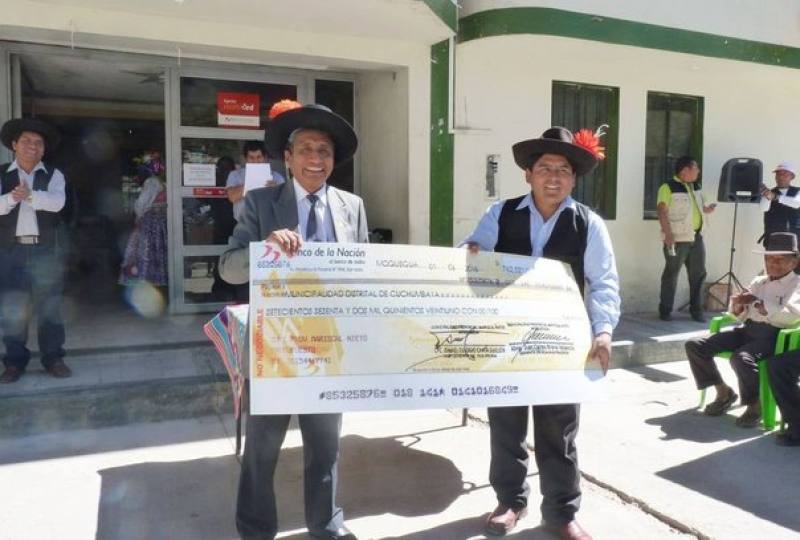 Hugo Quispe explicó que el distrito de San Cristóbal Calacoa recibió a través de su burgomaestre la suma de 719,442.07 soles, para el mantenimiento de la carretera San Cristóbal - Sijuaya, camino de Muylaque - China, captación y línea de conducción de agua potable del CP. San Cristóbal y camino de Bellavista – Calacoa - San Cristóbal.