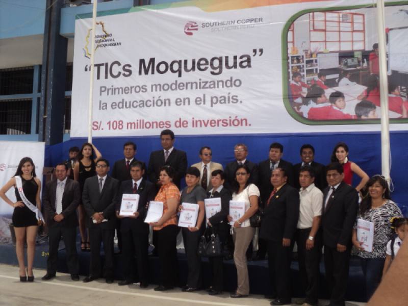 El proyecto TIC que promueven el Gobierno Regional y Southern Peru va cumpliendo metas y concluirá con la etapa de implementación de aulas en diciembre próximo. Actualmente registra un avance de 85% en la Región tras concretarse la entrega de otras 10 instituciones educativas implementadas en la provincia de Mariscal Nieto, Moquegua.