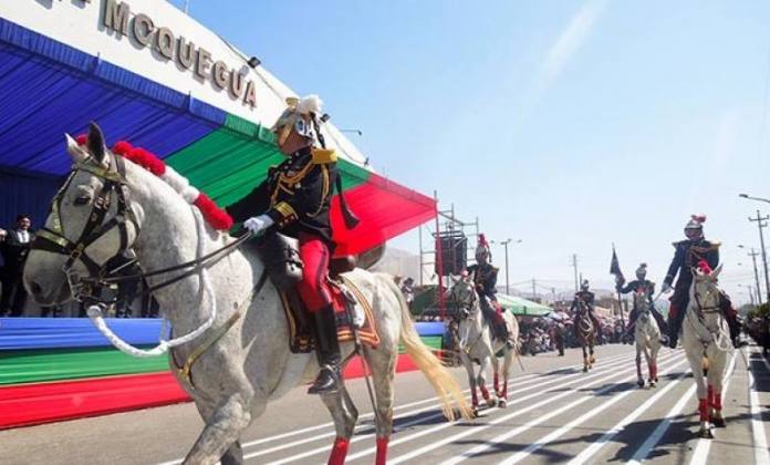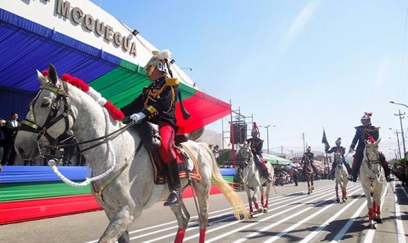 El regimiento de dragones (infantería a caballo) Mariscal Domingo Nieto se presentaron hoy por primera vez en Moquegua y con motivo de su 474 aniversario de fundación española que se celebra el 25 de noviembre.
