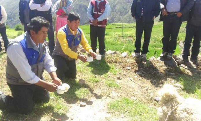 (Calacoa 15-04-2016) Manteniendo las costumbres y tradiciones de los pueblos milenarios del Ticsani, ayer los trabajadores y equipo técnico de la obra: Construcción del campo deportivo y espacios recreativos de Barrio Azul de la localidad de Calacoa realizaron el ritual “Pago a la tierra” que consistió en rendirle honores a la Madre Tierra por todo lo que nos provee y en la petición de las buenaventuras para la ejecución de la referida obra.