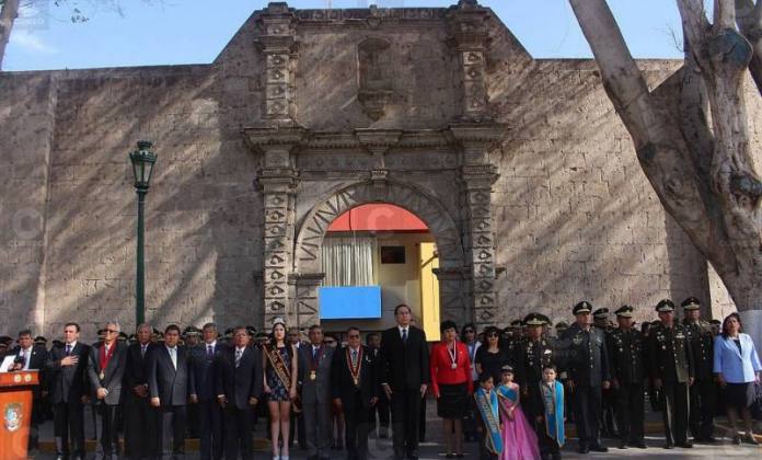 Encargado del despacho presidencial, por el viaje del presidentePedro Pablo Kuczynski a Colombia, el además ministro de transportes participó de la ceremonia cívica dominical en la plaza de armas.